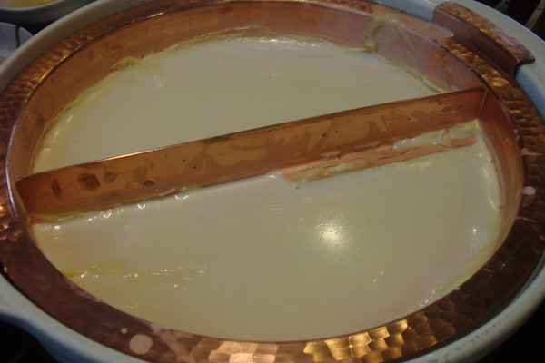 <)。凝結的速度似乎會越來越快(不知道是不是錯覺)。這鍋湯葉鍋看起來很大鍋,一開還想說該不會要撈到天黑吧。不過其實鍋子很淺,照片中這一鍋是