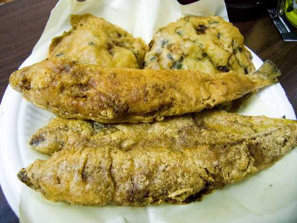 但是實際上吃起來,個人的感覺卻是蚵仔炸>豬肉炸>花枝炸